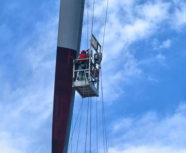 風機平臺上,運維團隊目光緊鎖監(jiān)控屏幕和現(xiàn)場環(huán)境。他們與高空人員時刻保持聯(lián)絡,憑借緊密的配合、豐富的經驗和對設備的精準操控,全力應對海風影響,穩(wěn)住作業(yè)平臺,確保高空作業(yè)的安全,齊心協(xié)力為 “葉片飛人” 保駕護航。