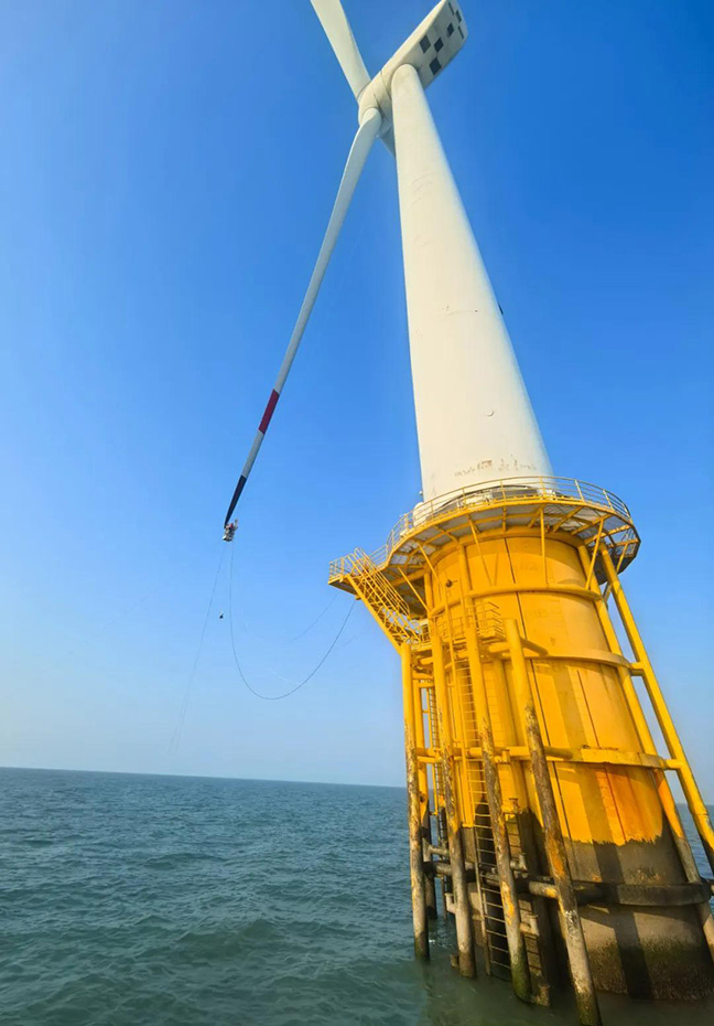 葉片前緣腐蝕每年可能造成發(fā)電量損失5%,有時可能損失25%以上,“葉片飛人”的消缺任務非常重要。正是這些 “葉片飛人”在高溫下的堅守,及時排查并消除了風機葉片的故障隱患。他們是風機葉片的“守護神”,用汗水和專業(yè)在烈焰高空詮釋著責任和擔當,用實際行動保障了海上風機的穩(wěn)定運行,為迎峰度夏的電力供應筑牢了防線,為清潔能源的高效利用貢獻著自己的力量。